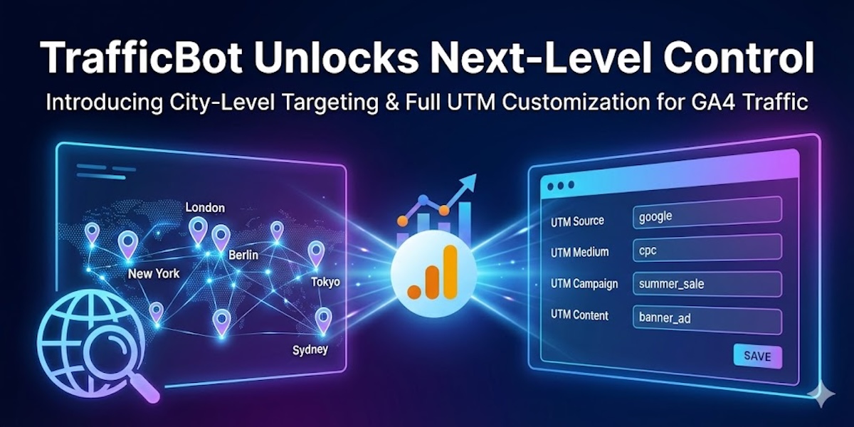 TrafficBot Unlocks Next-Level Control: Introducing City-Level Targeting & Full UTM Customization for GA4 Traffic